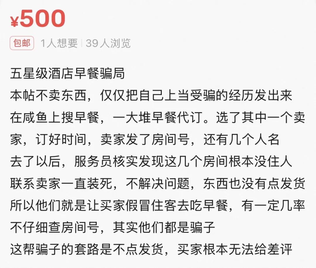 常有卖家随便编造一个假房号发给买家,让其直接去酒店吃“霸王餐”。若运气好、酒店核验不严,则蒙混过关;若被前台当场揭穿,卖家便轻描淡写地以系统问题为由退款,将所有尴尬与风险留给买家。