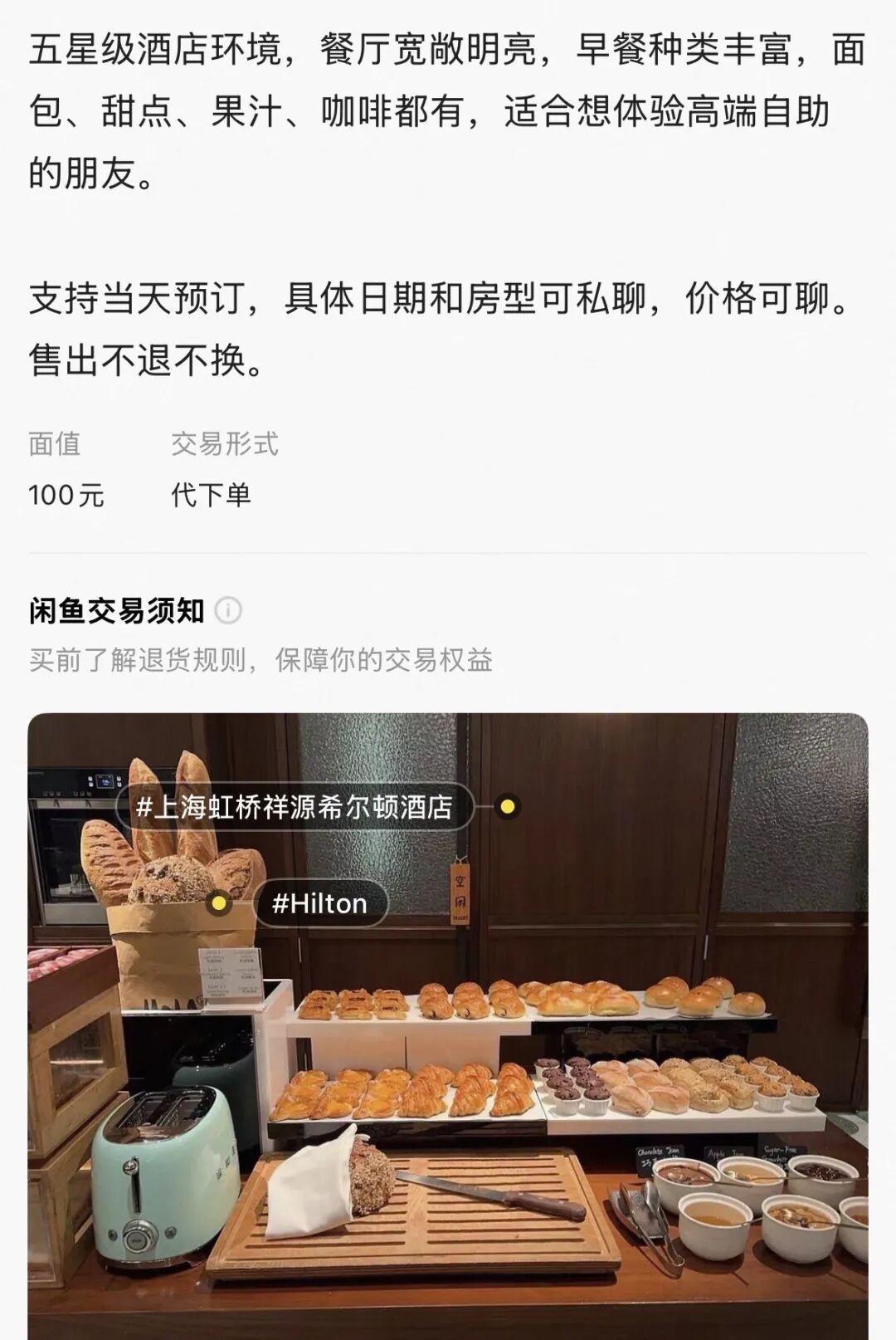 于是有人将目光转向了二手平台,这里有大量代订五星级酒店的卖家,他们通过积分房、大厂协议价、房券等方式,帮买家.5折、4折的超低价,订购奢华酒店。而且由于会员身份,还能尊享免费双早、升房等服务。